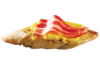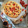 λεπτή ζύμη με φρέσκια ντομάτα, ελιές, τυρί φέτα, ελαιόλαδο, αλάτι