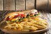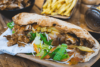 κοτομπουκιές, παρμεζάνα, ντομάτα, τυρί gouda, μαρούλι, μπέικον, σως μουστάρδας